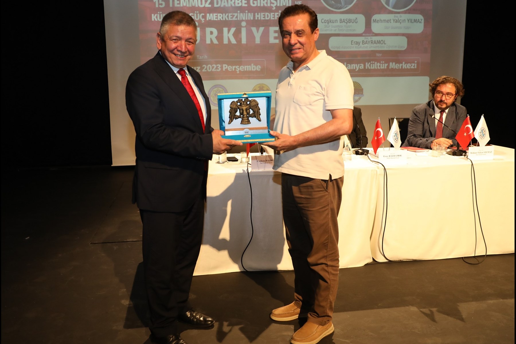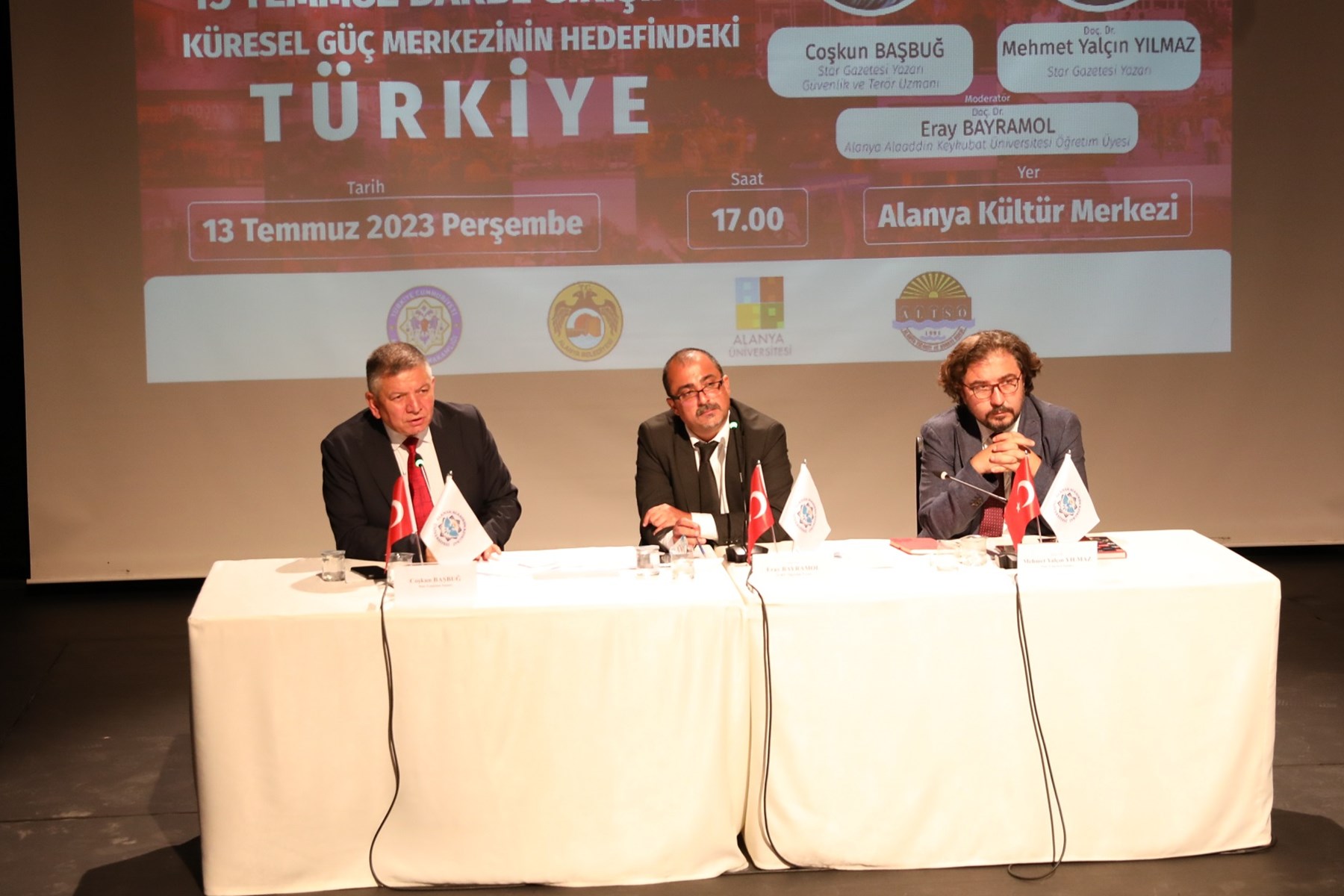 Alanya Alaaddin Keykubat Üniversitesi (ALKÜ) bilimsel ve akademik çalışmaların yanında yaptığı konferanslarla kamuoyunu bilgilendirmeye devam ediyor. 15 Temmuz Demokrasi ve Millî Birlik Günü Etkinlikleri kapsamında, Alanya Kaymakamlığı, Alanya Belediyesi, Alanya Alaaddin Keykubat Üniversitesi (ALKÜ) ve Alanya Üniversitesi tarafından düzenlenen "15 Temmuz Darbe Girişimi ve Küresel Güç Merkezinin Hedefindeki Türkiye" konferansında Star Gazetesi Yazarları, Güvenlik ve Terör Uzmanı, Emekli İstihbarat Albay Coşkun Başbuğ ile İstanbul Üniversitesi Öğretim Üyesi Doç. Dr. Mehmet Yalçın Yılmaz, FETÖ gerçeklerini anlattı. Türkiye’yi yıkmak için yapılan planlar ve hain terör örgütü FETÖ ve 15 Temmuz darbe girişiminin tüm detaylarıyla anlatıldığı konferansın moderatörlüğünü ise ALKÜ Öğretim Üyesi Doç. Dr. Eray Bayramol yaptı. Alanya Kültür Merkezinde yapılan konferansa, ev sahibi ALKÜ Rektör Vekili Prof. Dr. Arife Uslu Gökceoğlu’nun yanı sıra Alanya Kaymakamı Dr. Fatih Ürkmezer, Alanya Belediye Başkan Yardımcısı Abdullah Akbaş, İlçe Cumhuriyet Başsavcısı Celal Tekin, İlçe Jandarma Komutanı Yarbay Engin Burak Mindivanlı, Alanya İlçe Emniyet Müdürü Murat Kenan Patat, Alanya Üniversitesi Rektör Yardımcısı Prof. Dr. Yaşar Birol Saygı, ALTSO Başkanı Eray Erdem, protokol üyeleri ve vatandaşlar katıldı.