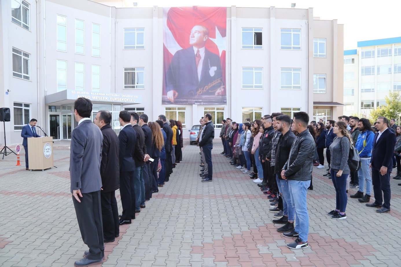 Atatürk’ün aramızdan ayrılışının 79’uncu seneyi devriyesi ve Aziz şehitlerimiz için düzenlenen Anma Programında duygu yüklü bir konuşma gerçekleştiren Genç Tema Kulübü Akademik Danışmanı Öğretim Görevlisi Mehmet Bilgin Karademir, “Üç kırık kaburga, delinmiş bir akciğer, yine de savaşmaya devam eden bir ruh, bir beden ve bir inanç… Mustafa Kemal ATATÜRK…"Türklerin vatan sevgisiyle dolu olan göğüsleri düşmanların melun ihtiraslarına karşı daima demirden bir duvar gibi yükselecektir." diyor Mustafa Kemal Atatürk… Bugün bitmeyen hüznün yıl dönümü. Genç Tema Kulübü Akademik Danışmanı olarak fidan dikimi sürecinin oluşumunda emeği geçen Sayın Rektörümüz Prof. Dr. Ahmet Pınarbaşı’na, Genel Sekreterimiz Yrd. Doç. Dr. Yavuz Uysal’a, SKS Daire Başkanımıza Hayri Akın’a, fidanların Antalya Orman Genel Müdürlüğü’nden getirilmesine büyük destek olan Yrd. Doç. Dr. Tolga Gül hocamıza ve fidan dikimi için çukurların açılmasında emeği geçen sevgili öğrencilerime, Turizm Animasyon Bölümü’ne ve Genç Tema Kulübü’ne çok teşekkür ediyorum” diye konuştu.