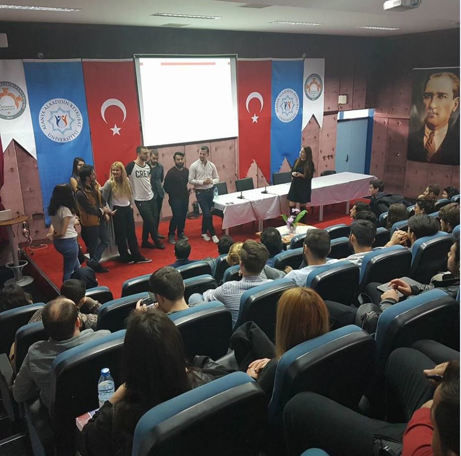 Alanya Alaaddin Keykubat Üniversitesi (ALKÜ) Sağlık Kültür ve Spor Daire Başkanlığı öğrenci kulüplerinden Uluslararası Ticaret Kulübü tarafından 01 Mart 2017 tarihinde “GİRİŞİMCİLİK VE LİDERLİK” Konulu bir konferans düzenlendi. Unıts Yönetim Kurulu BaşkanıI Merve AKMAN’ın konuşmacı olarak katıldığı programa akademisyenler ve öğrenciler katıldı. Program Merve AKMAN’a takdim edilen çiçek ile sona erdi.