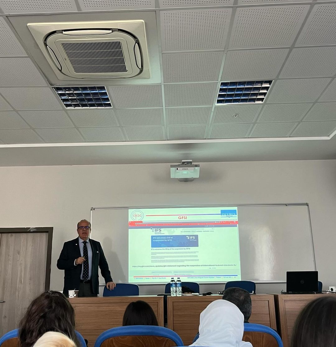 Başkanlığımız bünyesinde faaliyet gösteren Gıda Mühendisliği Topluluğu tarafından 20 Kasım 2023 Pazartesi günü Rafet Kayış Mühendislik Fakültesi konferans salonunda Prof. Dr. Y. Onur DEVRES'in katılımıyla "Gıda Mühendisliğinde Hijyenik Tasarımın Önemi" konulu seminer düzenledi.