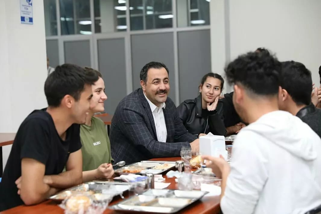 Rektör Kalan ve beraberindekiler iftar yemeğinin ardından öğrencilerle sohbet etti.
